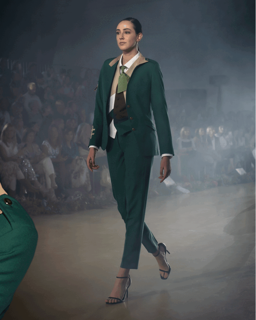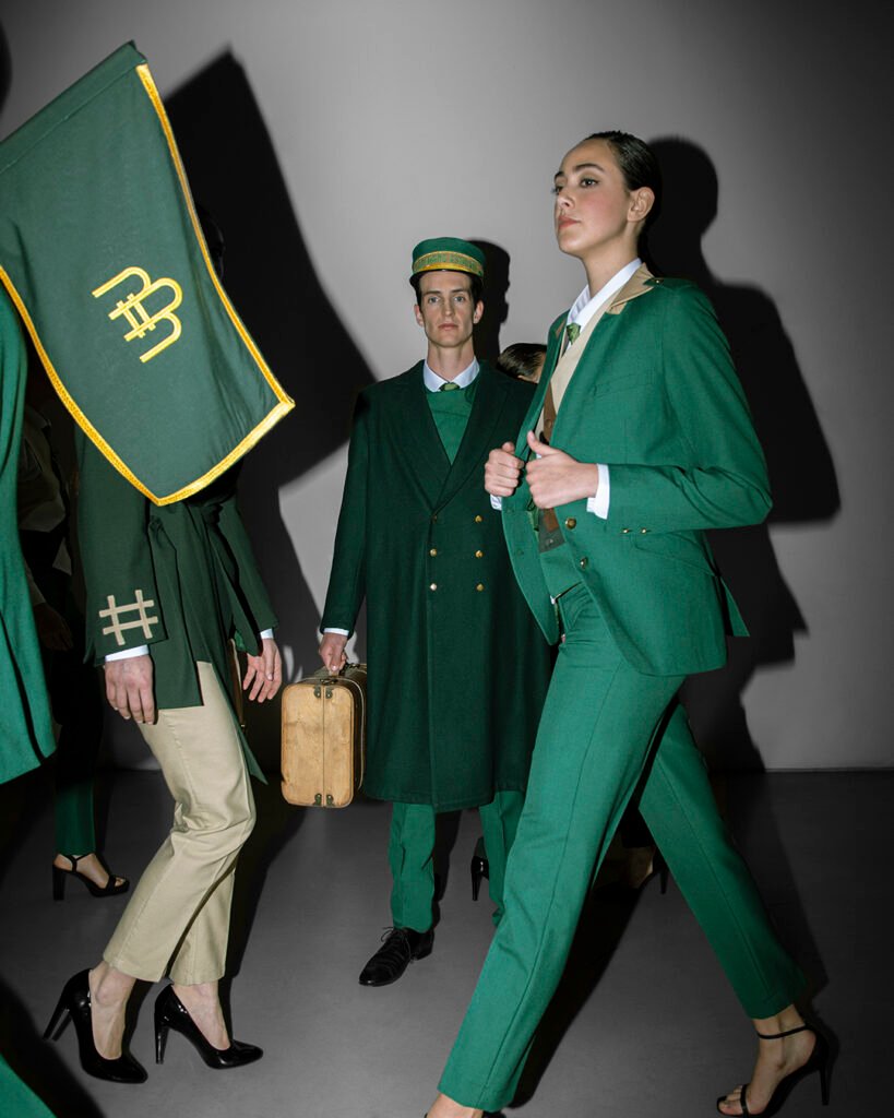«Cada uniforme rinde tributo a antiguos oficios ferroviarios, utilizando una paleta que conecta con el entorno: verdes que evocan la hoja de encina del valle, marrones que remiten a la tierra y piedra, y blanco como la nieve del paisaje pirenaico.»