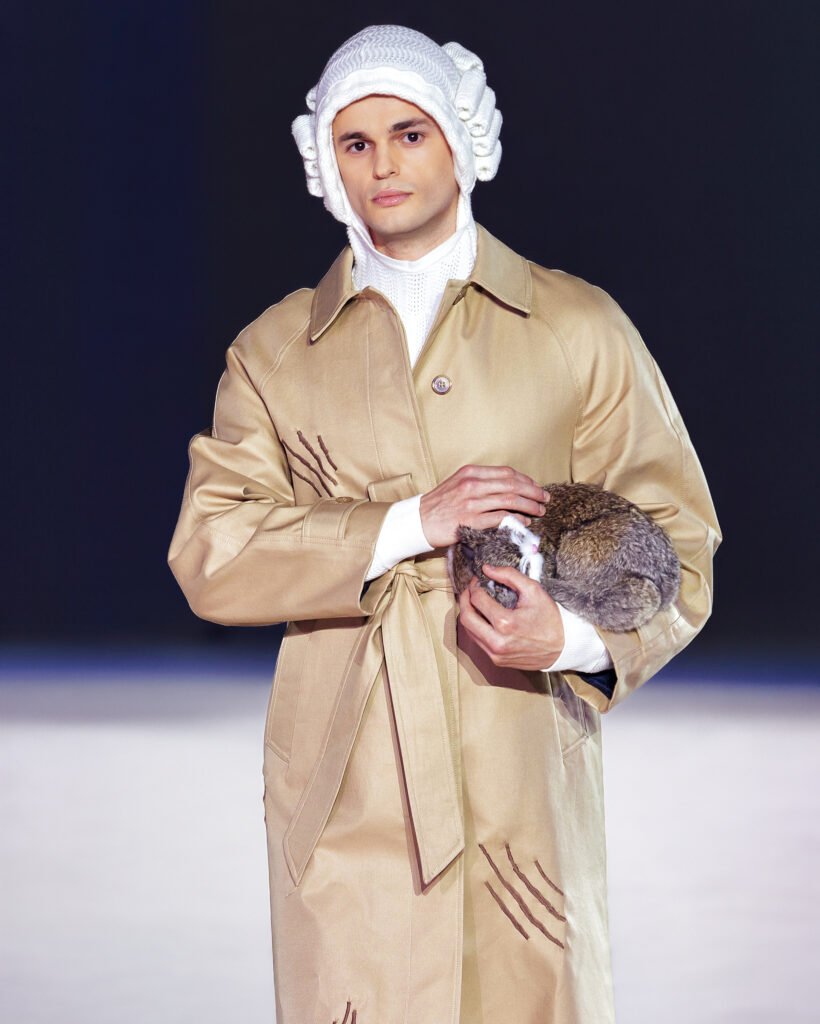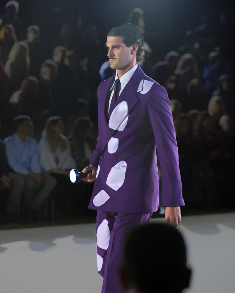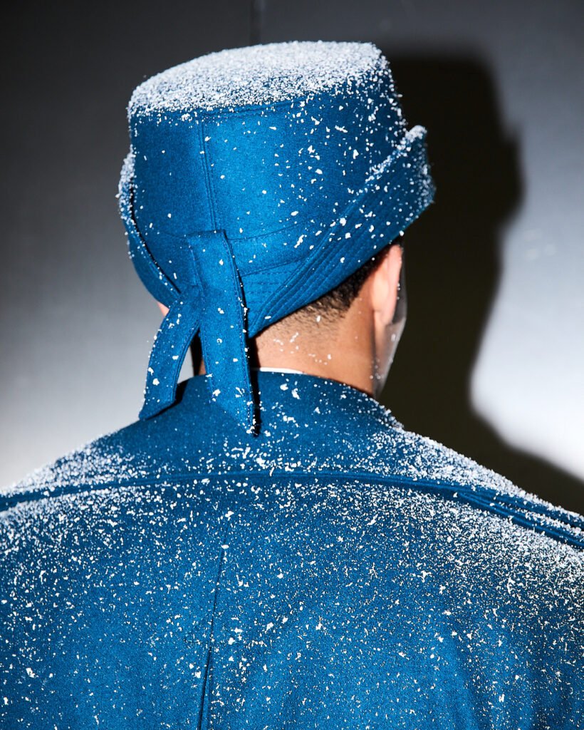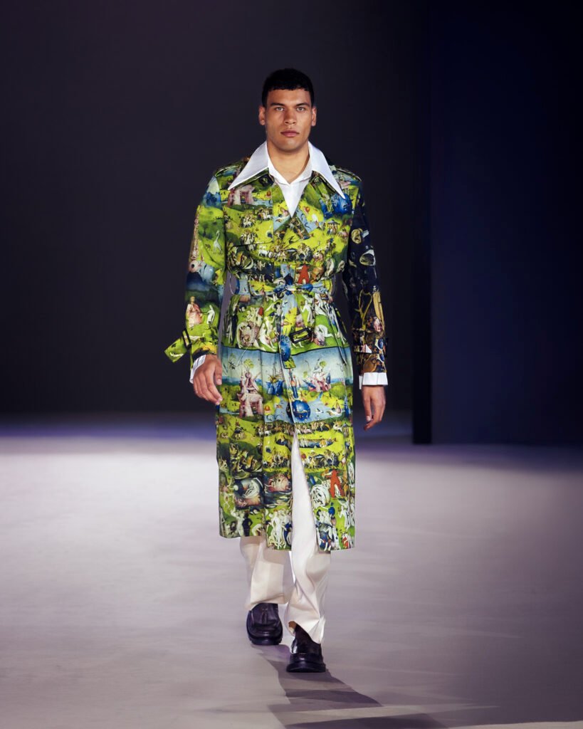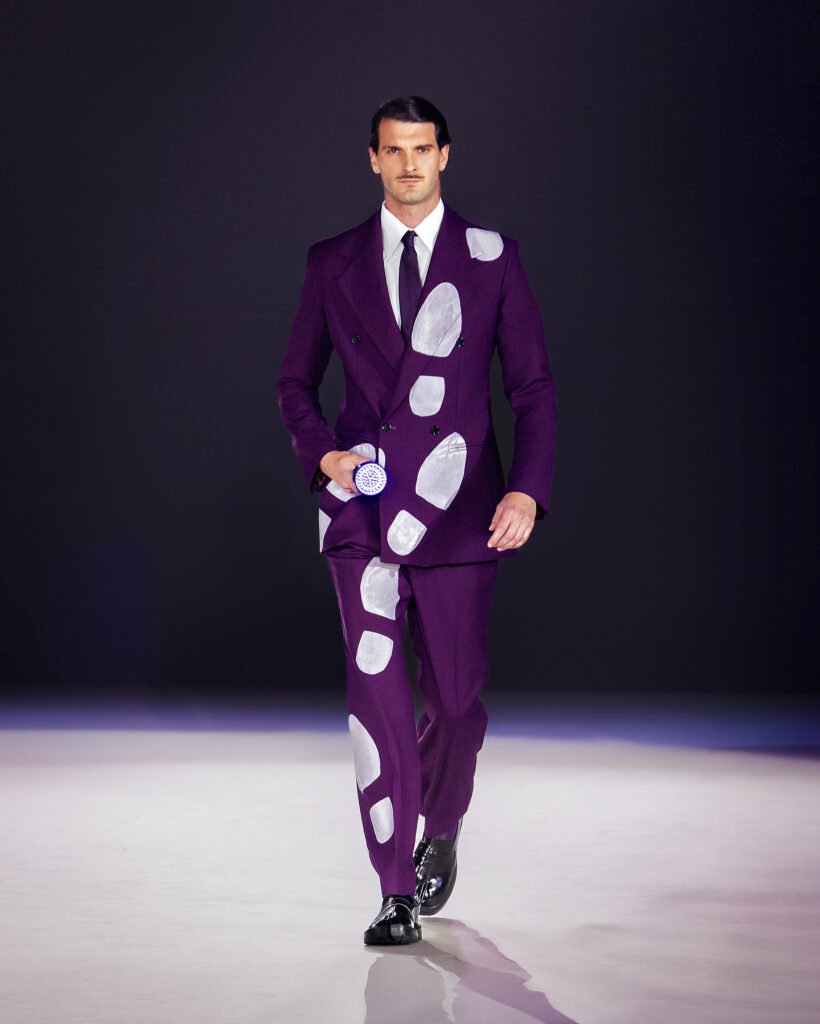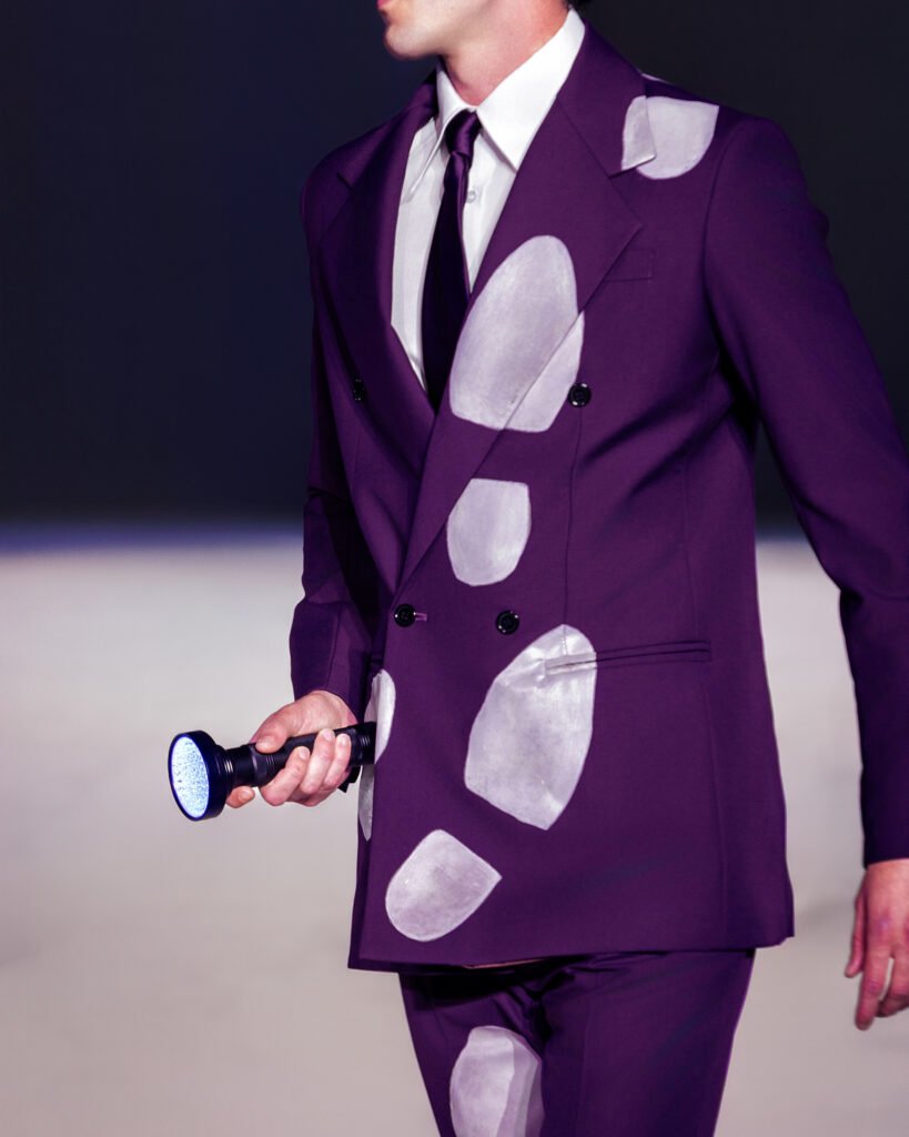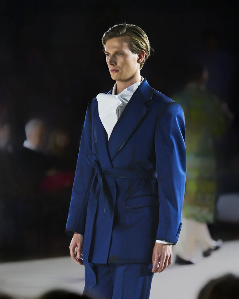 Esta colección rinde tributo a la chaqueta masculina en distintas vertientes. Siluetas sastreras de corte recto y cuellos y solapas de los años 70. Dos referentes artistas multidisciplinares intervienen en el mundo onírico de LAMAR.