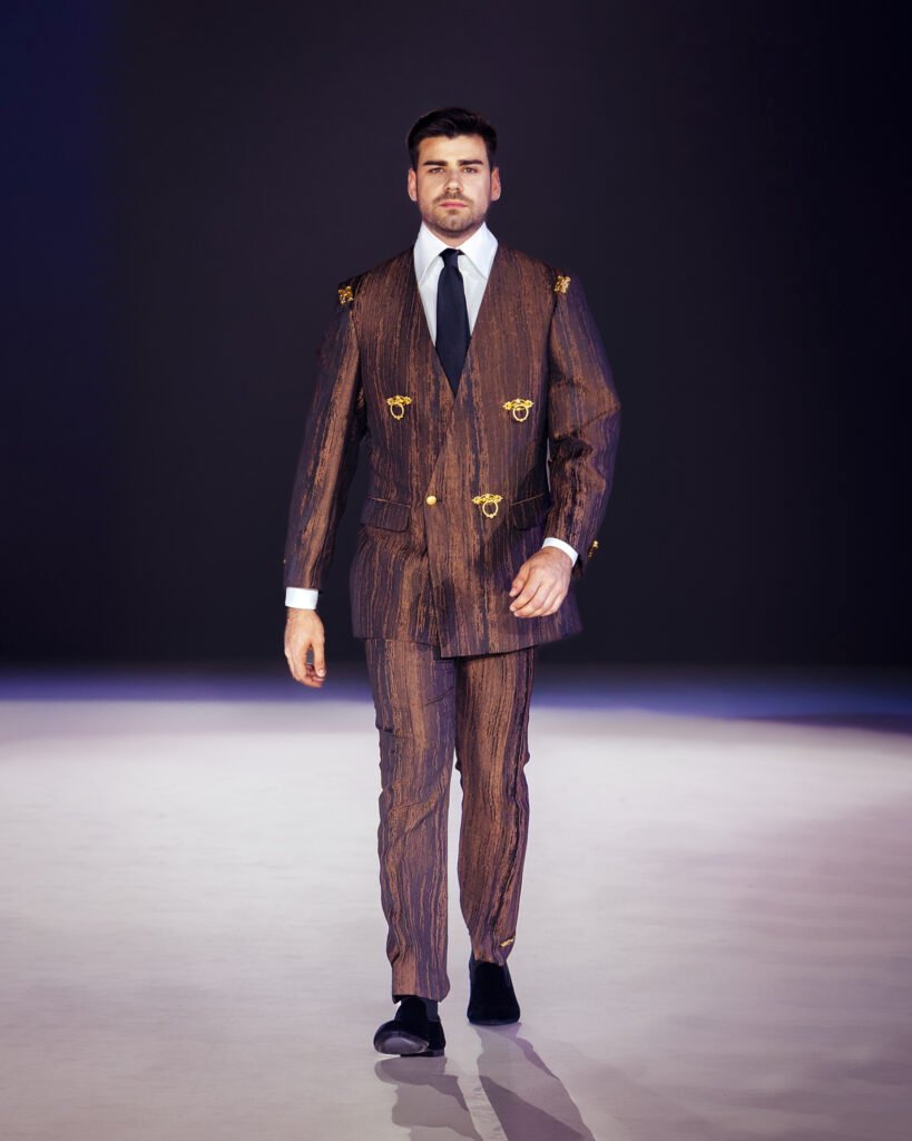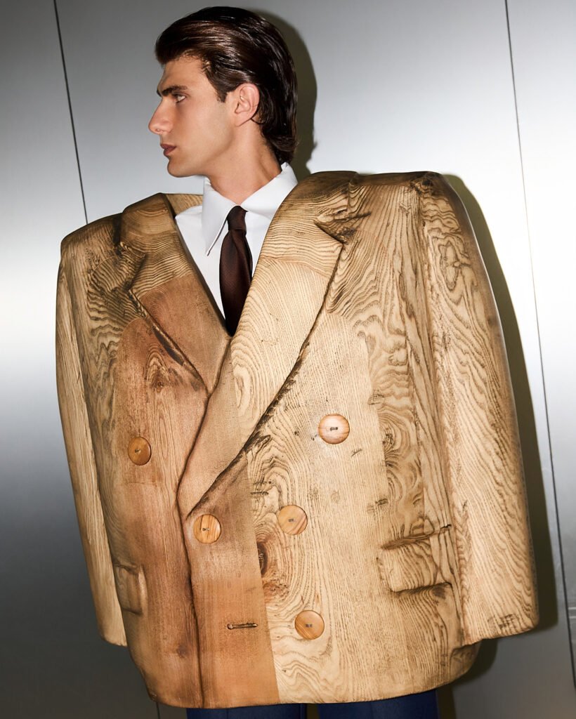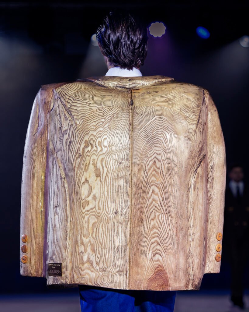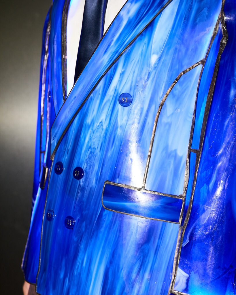 Chaquetas cruzadas elaboradas a través de madera y vidrio, un trabajo artesano y minucioso.»